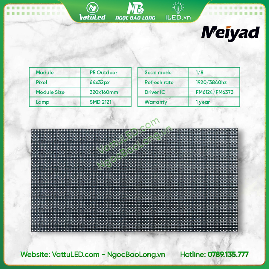 👉 Liên hệ ngay để nhận báo giá Module LED P5 Ngoài trời Meiyad tốt nhất từ Ngọc Bảo Long!